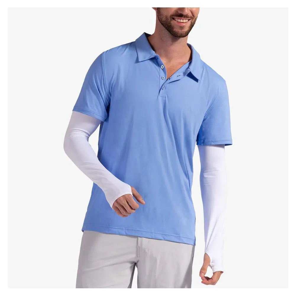 The BLOQUV Sun Sleeves in White provides sun protection from mid-bicep to hands. Its BlokTek performance technology and UPF 50+ rating help block 98% of UVA/UVB rays from the sun. The 4-way stretch fabric offers a soft, relaxed fit that won't slow your tennis movements and will keep you looking sharp while playing or relaxing with friends.