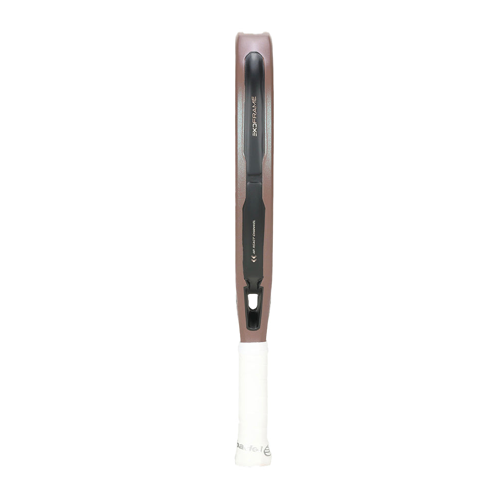 Su estructura innovadora ExoFrame mejora notablemente la estabilidad en cada impacto, permitiendo una mayor firmeza sin sacrificar ligereza. El formato híbrido junto a un balance medio favorece la polivalencia total en pista, adaptándose a jugadoras ofensivas y defensivas por igual.