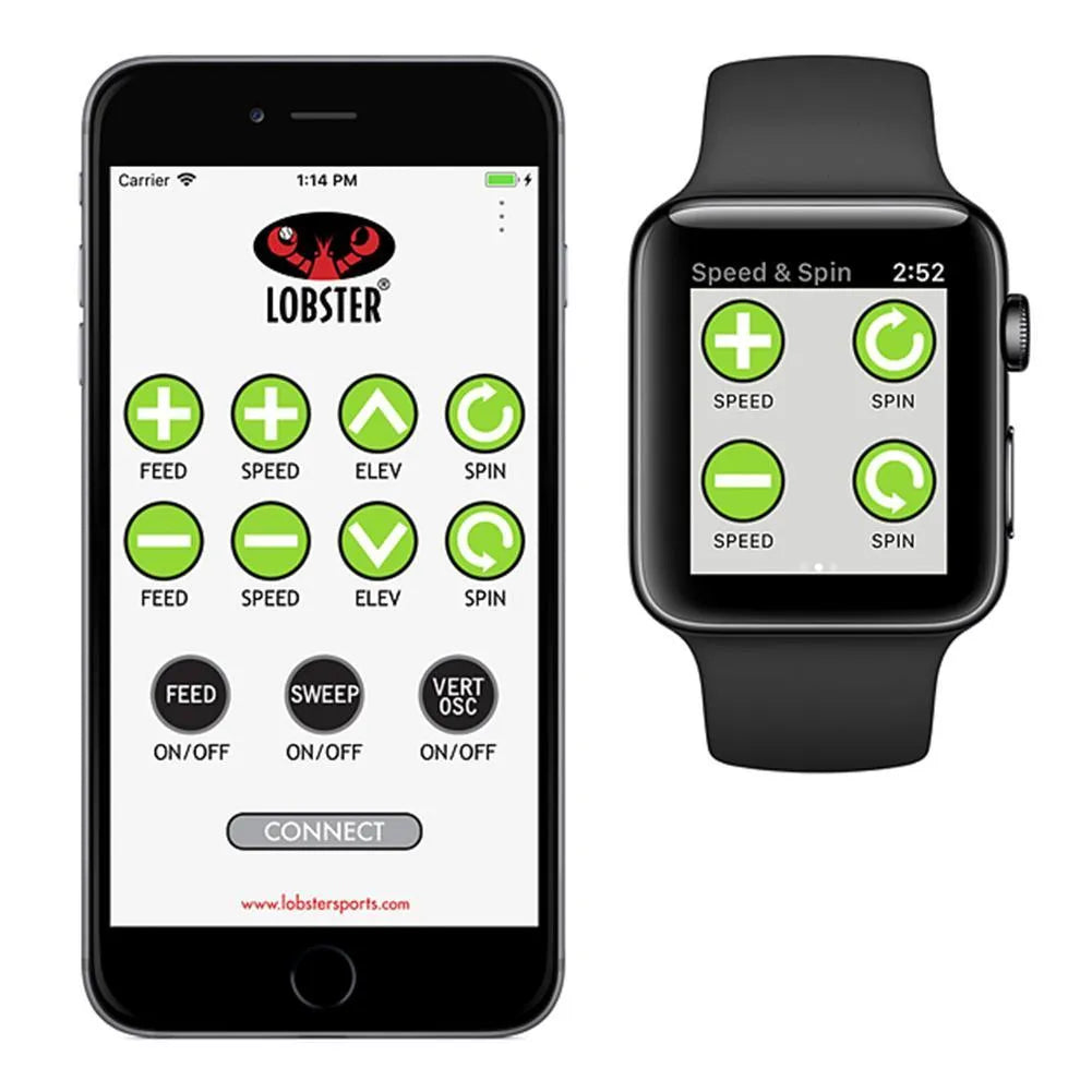 The Lobster Elite Two with 10-function Wi-Fi remote control for Apple is geared toward intermediate and advanced players. The triple oscillation feature, which produces shots at random width and depth, places emphasis on strong footwork and the ability to adapt to the types of variable shots one sees in match play. Almost all battery-powered tennis ball machines sweep randomly left to right horizontally, the Lobster Elite Two tennis ball launcher also oscillates vertically, giving you short and deep shots in a random pattern to produce a more intense workout. Or, choose your shot placement vertically only and horizontally only.