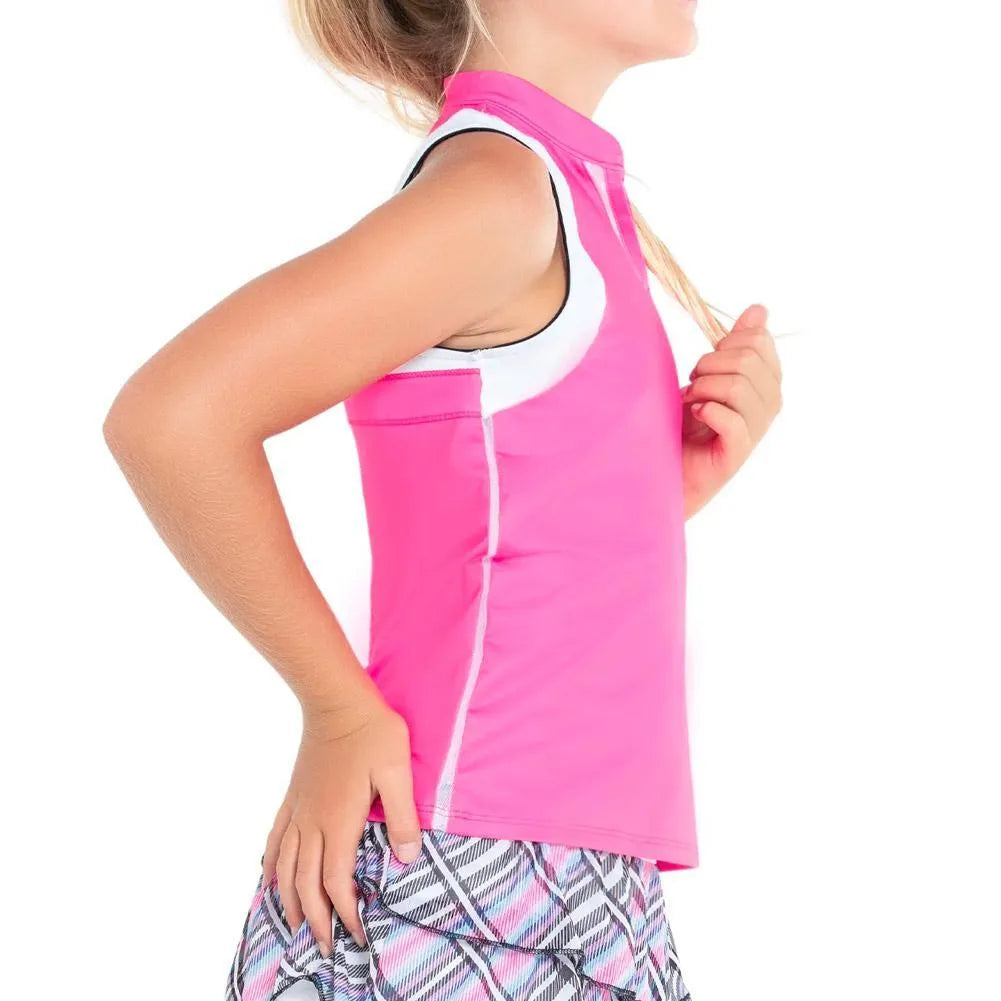 Gear her up for greatness with the Lucky In Love Girl's Birdie Tennis Tank. This fullback tank is designed with contrasting elements at the arms and back that create the impression of a racerback design while retaining modesty. The mock V-neck insert adds stylistic flair which works in tandem with the raised collar to create a classic on-court style. Pair with more styles from the Prep It Up collection for the complete look!