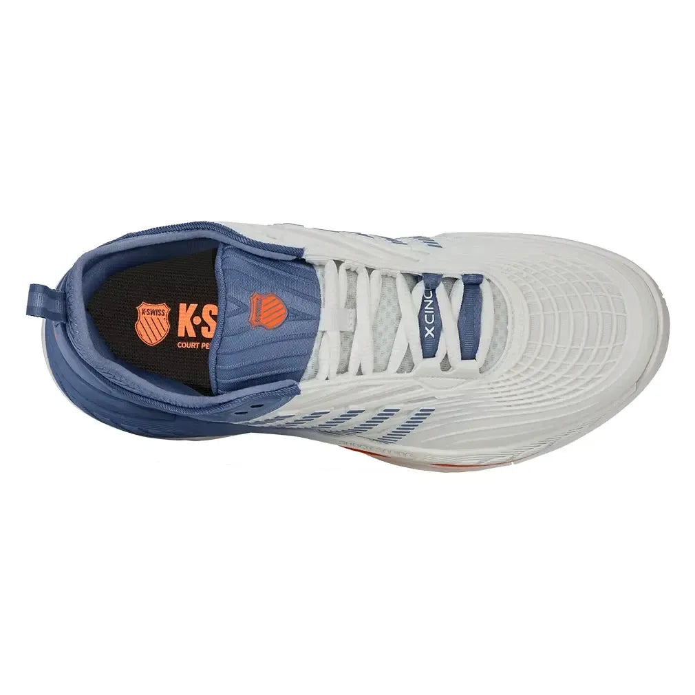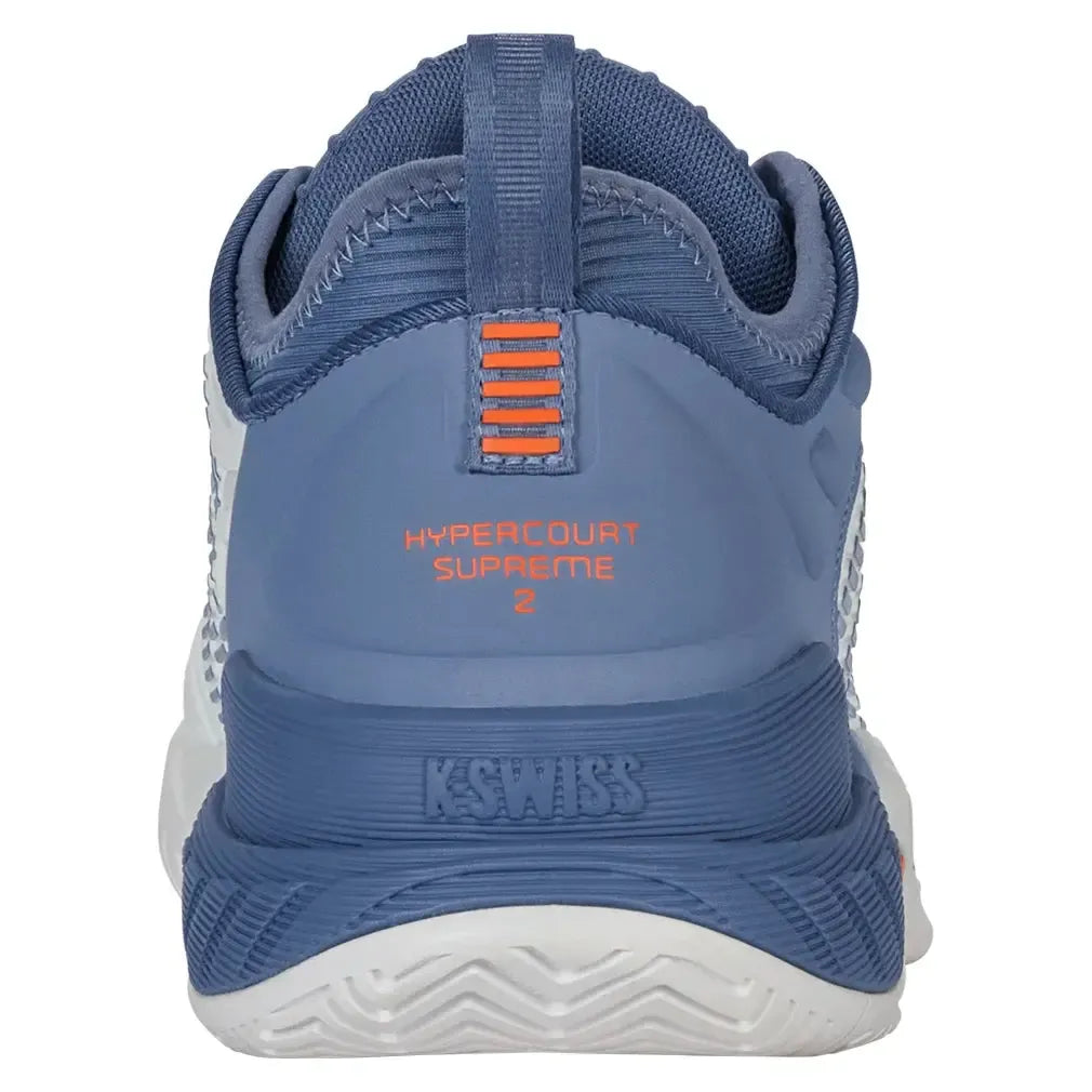 The K-Swiss Men's Hypercourt Supreme 2 Tennis Shoe is an update to one of K-Swiss's most popular tennis shoes. Key features are a more secure fit, increased support, and more outstanding durability while maintaining maximum comfort. The Durawrap X upper provides support and drag protection while keeping a flexible feel as you track down the next ball. The Dual-density midsole utilizes the lightweight Surgelite external foam for maximum comfort and support. A high rebound Shock Spring inner foam on the forefoot allows a quicker reaction in every step. The Dragguard 7.0 rubber outsole is formed into a modified herringbone tread pattern for traction and durability on all court surfaces. The newly engineered soft bootie collar gives a more secure fit around the ankle.