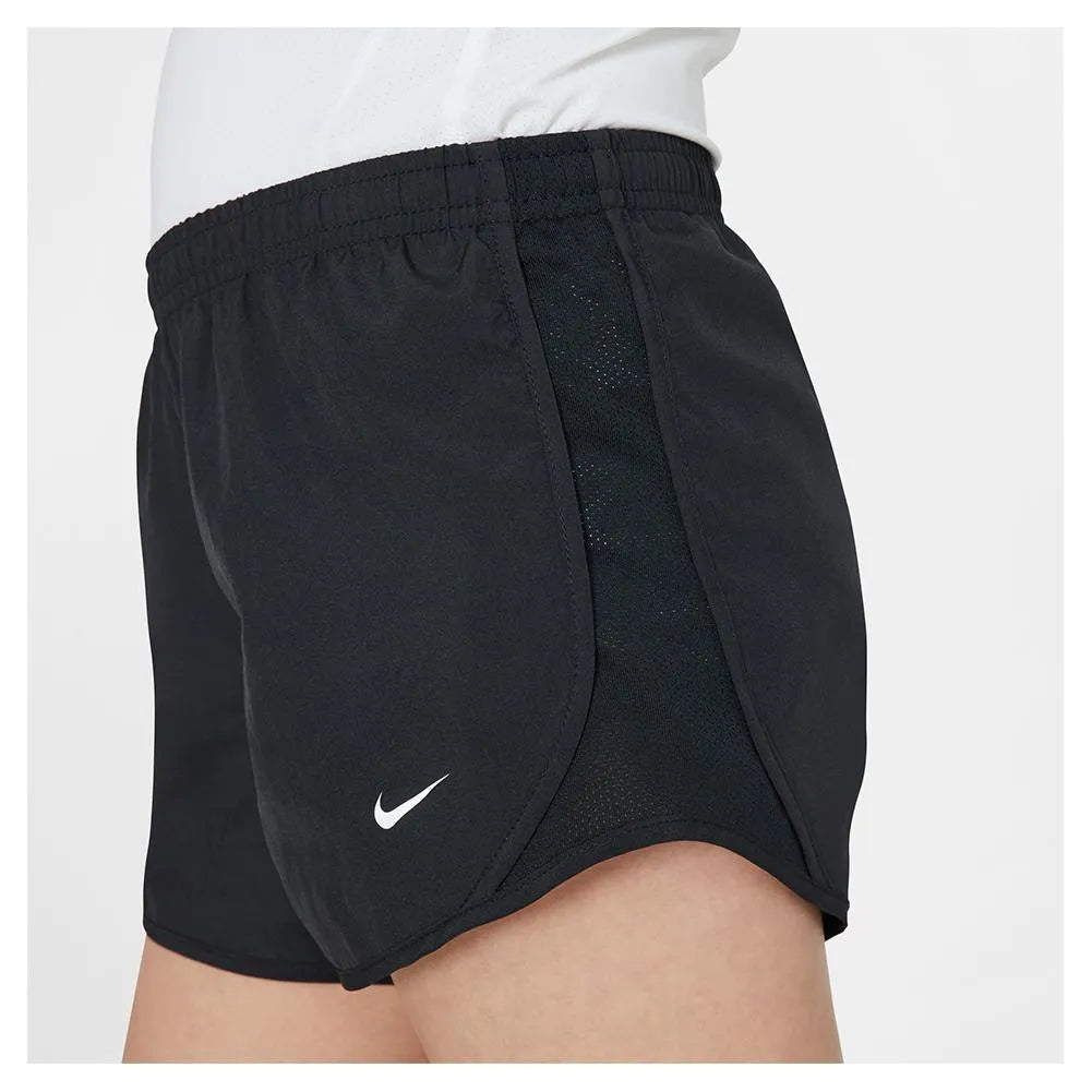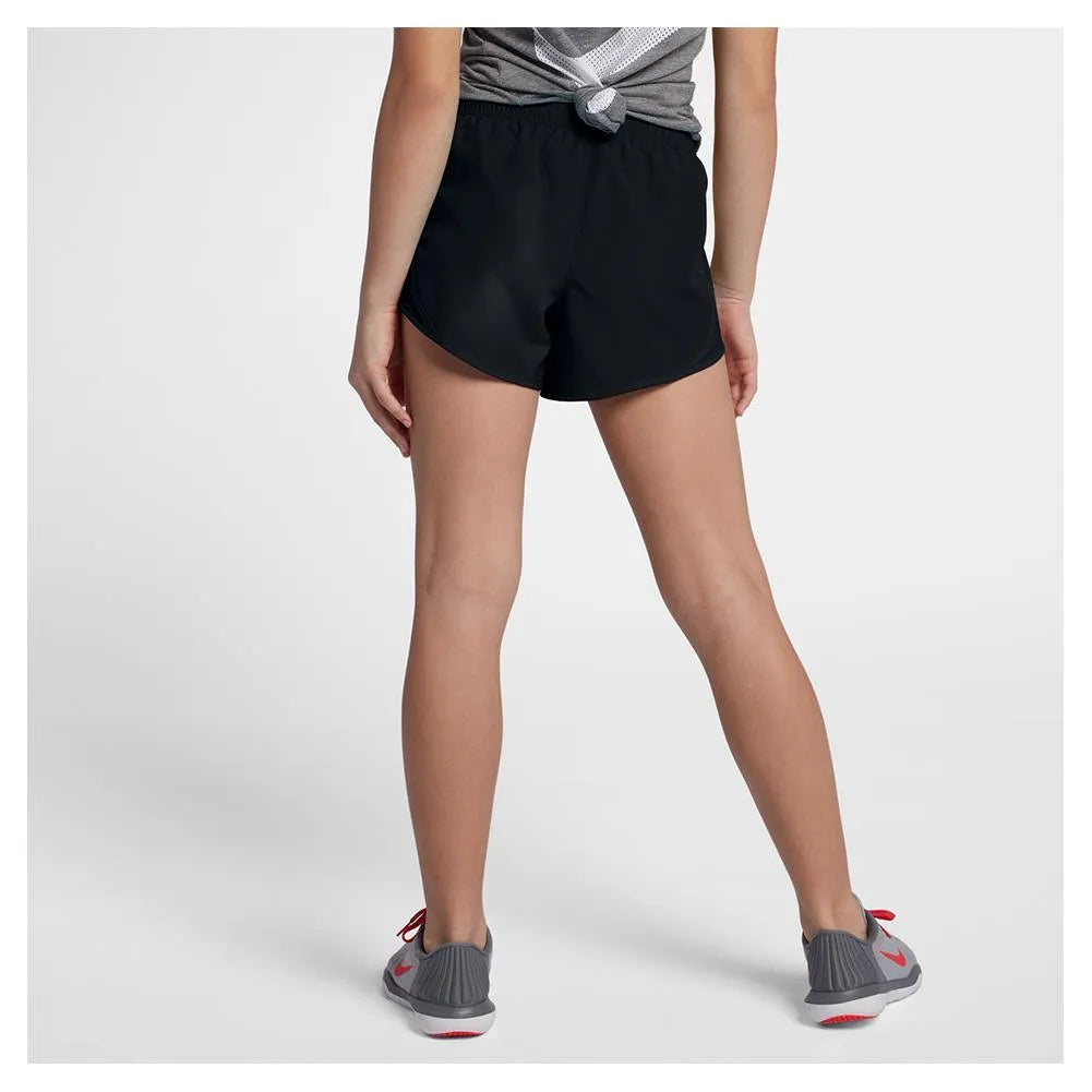 She'll perform her best every time in the lightweight Nike Girl's Dry Tempo Running Short. She can wear these versatile shorts to the court, the gym, and even for a run! It features Nike's signature Dri-FIT technology to help her stay cool and dry as the days heat up. The elastic waistband with inner drawcord ensures a snug, personalized fit while the built-in brief lining adds to her comfort and convenience. A small key pocket has been added at the inner right waist.