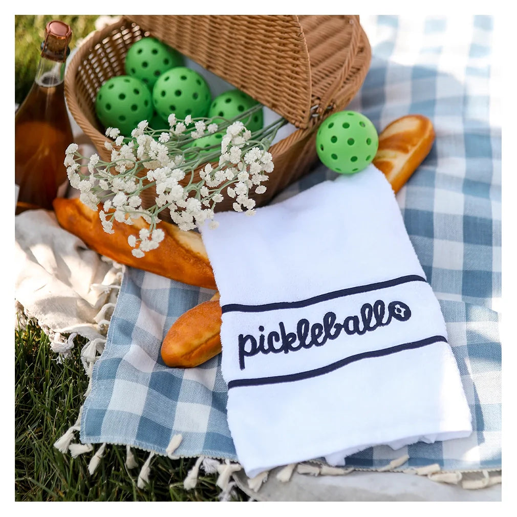 Get ready to play in our Ame and Lulu Swift Terry Towel. This towel will help you wick away sweat and stay focused on your game. Embroidered with "love" or "pickleball" on the front of the towel.Â