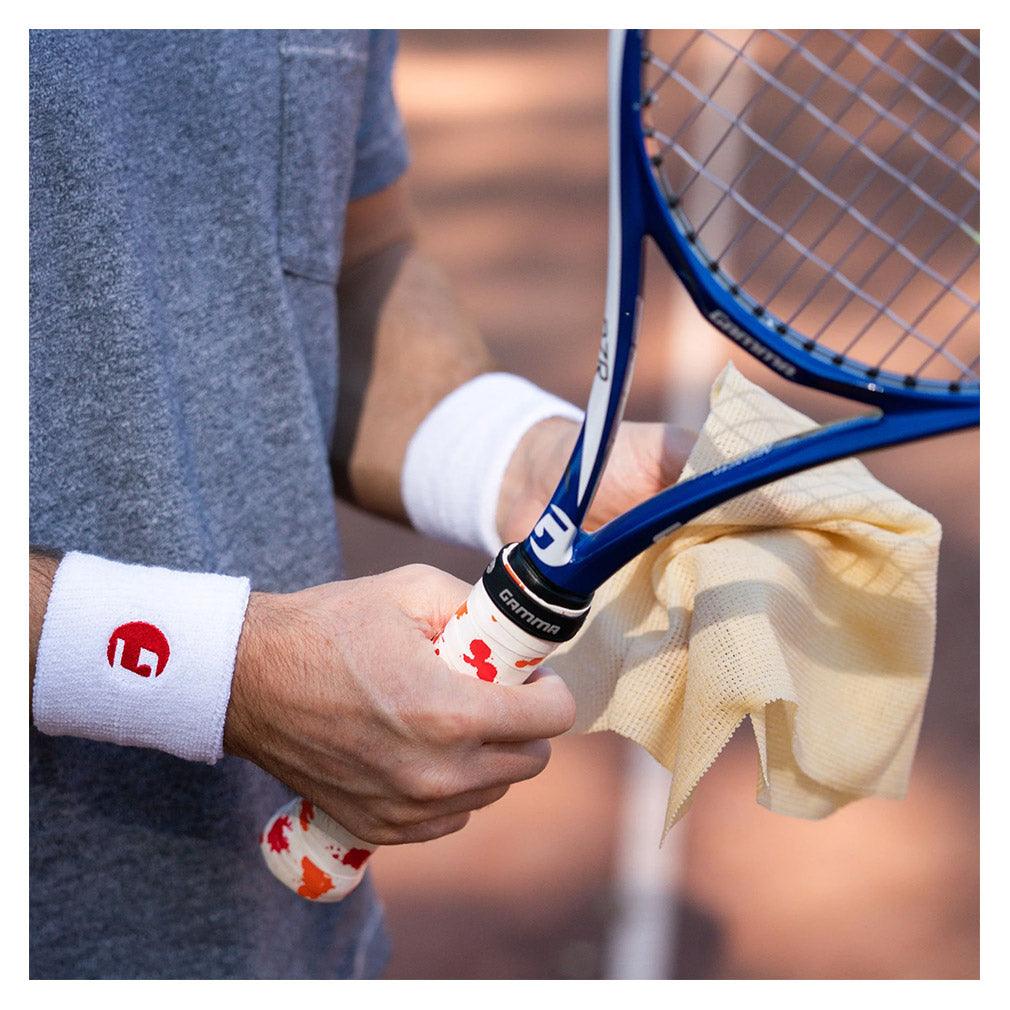 Tacky cloth towel that you press onto your hands, grip, or gloves for greater gripping power.